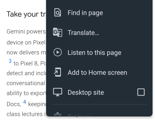 Chrome för Android har fått en funktion som läser upp hemsidor högt. Finessen nås genom att öppna Chromes meny och välja ”Listen to this page”. I skrivande stund fungerar högläsningen bara på tolv språk och svenska är inte ett av dem.