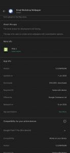 Nu kom Emoji Workshop Wallpaper för mig när jag gjorde en uppdatering av apparna i Play Butik. När den väl var installerad så syntes den inte till i inställningarna för bakgrund förrän jag startade om.