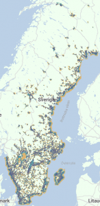 Nu går det inte att skilja 3G2100 och 3G900 på Tele2s täckningskarta tyvärr så det blir lite svårt att säga men Tele2s 3G täckning visas så här iallafall