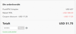 Ett tips i allmänhet om man köper tjänster på nätet är förresten att bara lämna sidan där priset visas uppe och göra annat en stund. Allt som oftast dyker en rabatt upp efter allt mellan 5-10 minuter. Man kan också testa lägga en vara i kundkorgen om inget dyker upp och sedan idla i ytterligare 5-10 minuter.