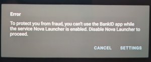Vad har du för version av Nova Launcher och BankID? Vilken telefon har du?