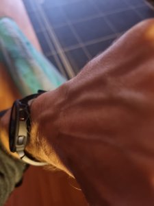 Har kanske använt det bandet i ~1 vecka då jag roterar med lite andra klockor och har använt gummibandet vid träning, vilket gör att det fortfarande ser ut som nytt med endast ett litet märke från spännet.
