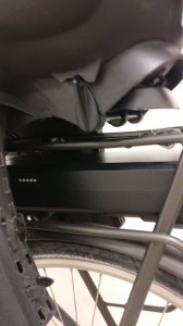 Vi har två olika elcyklar där batteriet sitter under pakethpllaren, på min MADE damcykel har vi en likadan cykelsits och där funkar det bra.