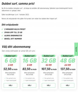 Verkar som att befitliga kunder kan ändra surfmängden och dra nytta av erbjudandet igen, eller kommer det inte gå att slutföra? Någon som provat? Så här ser det ut under Mina sidor.