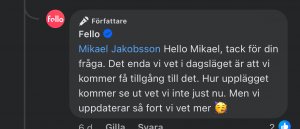 Om man vill kontrolla om 5G är online är ju bara att besöka www.fello.se/5g eller liknande. Om ni kommer ihåg så lanserade Fello fello.se/VoLTE då det var en stor nyhet. 5g sidan är ännu 404 så man har inte lanserat tjänsten.