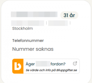 Men nu kan man hitta mig där om man söker på mitt namn och adress direkt däremot kan man inte hitta mig på nummret, så det känns som det hämtar informationen från PTS och Skatteverket och många andra register också.