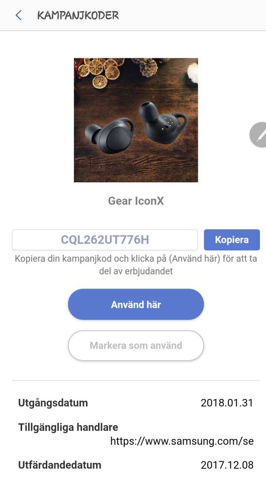 Gear IconX rabattkod för användning i Samsungs Shop.