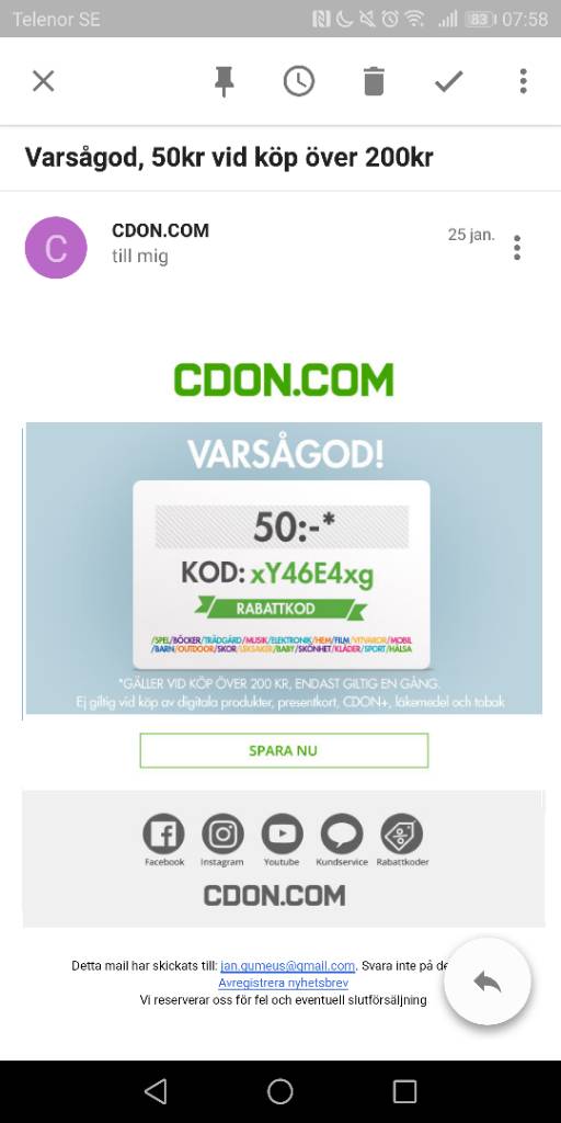 Passar på att dela med mig 50:- på CDON vid köp över 200:-