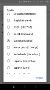 Kunde aktivera svenska på min android telefon nu på morgonen. Fick senaste appen igår.