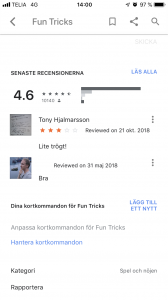 Svenska- det enda användbara är inköpslista och timer som verkar fungera. Att tända mina Trådfri från Ikea är totalt omöjligt. Den vet inte hur den ska hjälpa mig. Inte heller vägguttag eller värmepumpar kan den starta...