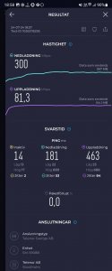 Vet inte vad som hände med svarstiden för 5G-testet. Att servern är i Stockholm bör inte påverka så mycket egentligen.