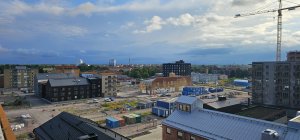 Bonus, utsikt över området från vån 16 av p-huset, där även mätningarna utfördes, med fri sikt till flera basstationer för samtliga mobilnät.