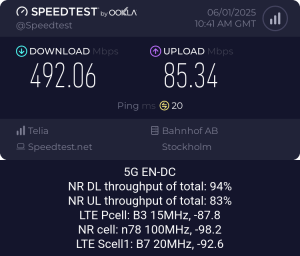 Net4Mobility näst högst upp, både låga & höga band ink N78.