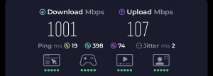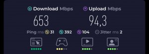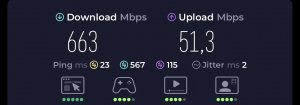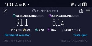 Inomhus samma resultat fast 80 Mbit/s upload.