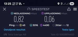 Nog den bästa hastigheten på med 4G från Tele2 jag sett! Bra med uppgraderad site och stor tillgång på frekvensutrymme. Kollade tyvärr inte vilka frekvenser - men gissningvis är det band 3, 7, 8 och 20.