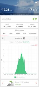 Hej Androidvänner! Idag var det en bra dag för solverksproduktion. Nytt rekord med 15,33 kWh, vilket täcker en betydande del av behovet för idag.