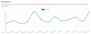 Genomsnittliga elpriset för augusti i år verkar nu passera förra årets toppnotering i december som varit den dyraste månaden hittills. Och augusti är inte slut än. Fortsätter de senaste dagarnas höga priser så kommer prisrekordet för en enskild månad att slås med ganska mycket. (Pris i elområde 3)
