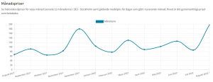 Så här ser utvecklingen av månadspriserna ut just nu där augusti-siffran är preliminär eftersom augusti månad inte är slut ännu: