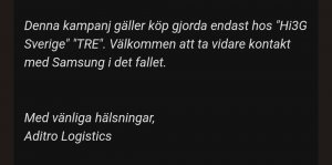 Ang buds2 på köpet med 3 så gäller det tydligen bara om mobilen är köpt på plats på 3, inte om man väljer med 3 abonnemang vid köp via samsungs. Surt. Meddelandet från de som hanterar buds2 utskicken.
