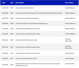 Hur lång tid tog det för dig från "The parcel has reached the parcel center. Czech Republic" till att den kom fram?