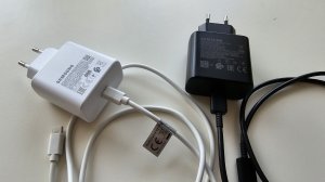 Jag har två st Samsung 45W laddare, den svarta har originalkabeln och är den första modellen som kom. Den vita är den nyare modellen. Det blev strul vid beställningen då de råkade skicka den som kom utan originalkabel, men jag fick istället en OTB-kabel (certad för 65W) som kompensation och den funkar lika bra som Samsungs 5A kabel.