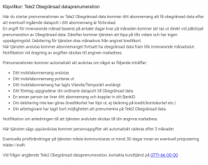 Med deras abonnemang som heter Obegränsad (som kostar 569kr/månad) ingår roaming i EU/EES samt ”ca 25 övriga länder”. I de andra abonnemangen ingår inte roaming utanför EU/EES, eftersom du fortsatt har abonnemangsformen du väljer - men får obegränsad data i tre månader.