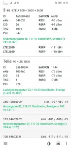 OK, med min Note 8 så fick jag 1+7+20 på några ställen idag också (men inte överallt där band 1 LTE fanns).