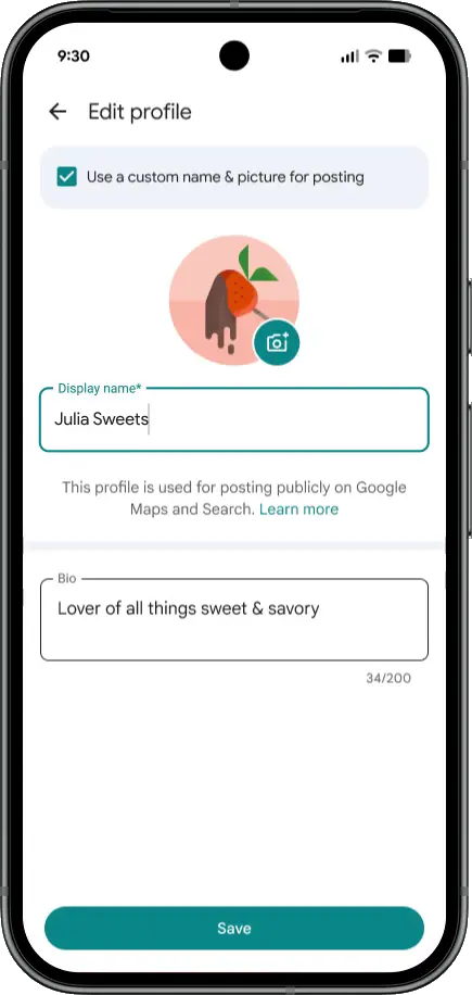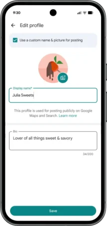Om du inte vill att ditt namn och din profilbild ska publiceras offentligt på internet kan du istället välja ett smeknamn och en separat profilbild som bara används för recensioner. Google påpekar att anonymiteten inte ökar risken för fuskbetyg: smeknamnet är fortfarande associerat med samma Google-konto. Det enda som ändras är vad som visas utåt.