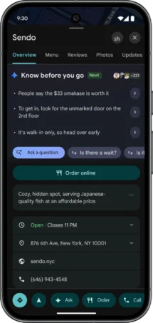 Sista nyheten är vad Google kallar ”insidertips” från Gemini. I praktiken handlar det om en matnyttig samling tips om exempelvis restauranger, hotell eller konsertlokaler. Gemini kan exempelvis berätta om stället har en specifik klädkod, när man bör vara på plats eller om en rätt på menyn är särskilt uppskattad.