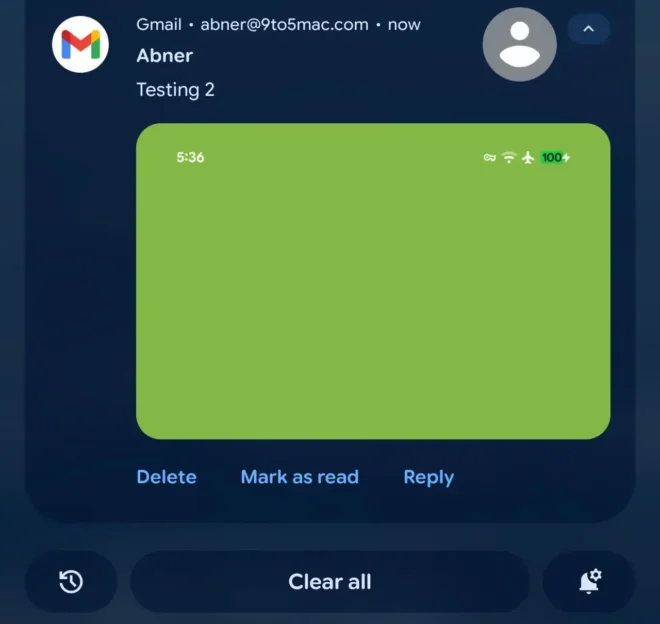 Gmail visar nu bilagor till mejl direkt i aviseringen i aviseringsmenyn. Om en bild har bifogats med mejlet erbjuder aviseringen en förhandsgranskning. Andra bilagor likt PDF-filer visas också i rutan.