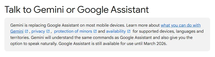 Att Gemini kommer ersätta Google-assistenten är känt sedan länge men Google har inte berättat exakt när den gamla assistenten försvinner. En supportsida ger dock nu en tydlig indikation, då det står att Google-assistenten kommer gå att använda till mars 2026.