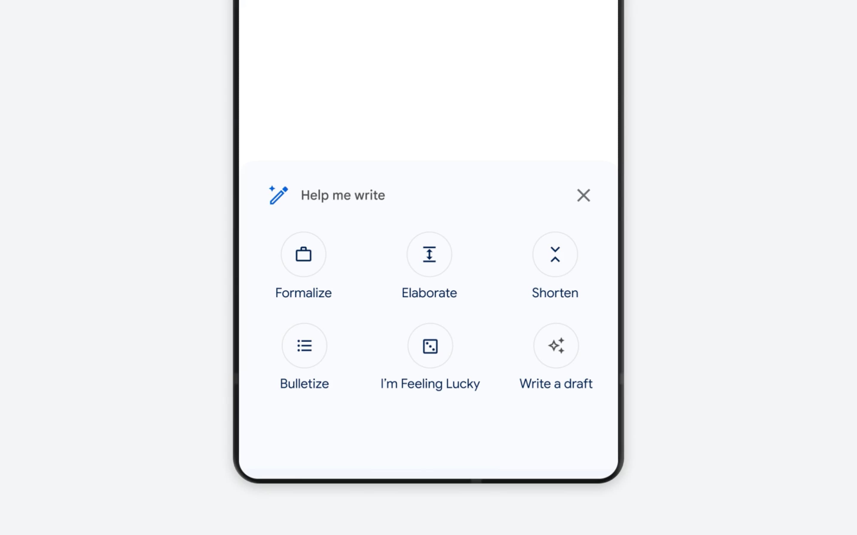 I Gmail kan mjukvaran skriva utkast på allt från födelsedagsinbjudningar till jobbansökningar. Användare kan även be Gmail eller Docs att ta vad de skrivit och göra texten mer utförlig eller mer koncis och kortfattad. Googles generativa AI kan dessutom ändra tonen på en text och göra den mer formell – eller mer lekfull och informell. I Docs går det att be AI:n att skriva hela artiklar och andra typer av längre texter.