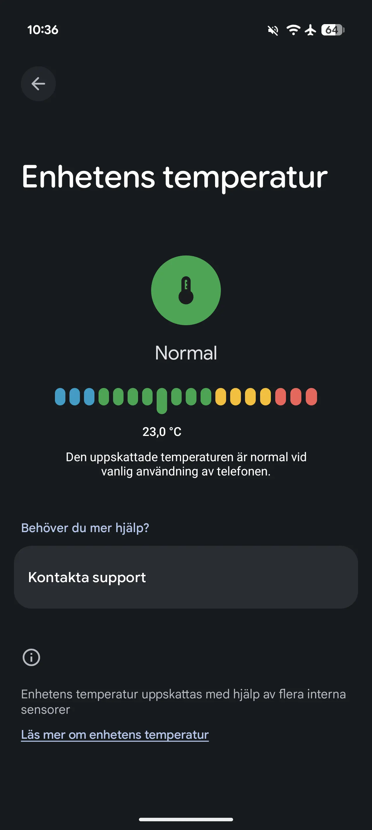 Pixel 6 och senare modeller har fått tillgång till nya kategorin ”Enhetsstatus och support” som visas allra längst ned bland de vanliga inställningarna. Google beskriver kategorin som ett centrum för att förstå telefonens hälsa, med inbyggda tester för att verifiera prestandan. Det går bland annat att se enhetens temperatur.