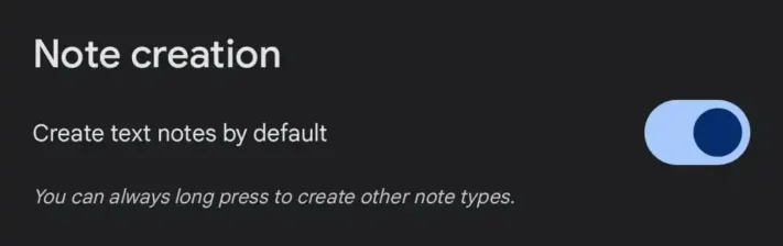 När alternativet aktiveras räcker det att trycka på plusknappen för att omedelbart skapa en ny textanteckning. Det går fortfarande att skapa de andra anteckningstyperna genom att istället långtrycka på plusknappen.
