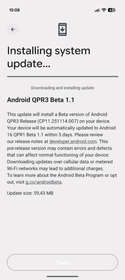 Google har redan släppt en ny beta av Android 16 QPR3 för Pixel. På en Pixel 10 Pro var uppdateringen 59,4 MB. Beta 1.1 verkar mest vara en nödåtgärd för skaran som råkat ut för en elak bugg som gjorde att vissa appar kraschade när de startades.