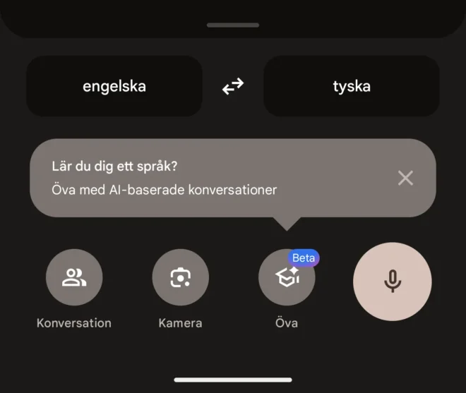 En nyhet som nu faktiskt kommer till Sverige är de Duolingo-liknande språklektionerna i Translate. Google nämner specifikt Sverige, Tyskland, Indien och Taiwan i sitt tillkännagivande. Lektionerna har redan dykt upp i Translate via en ny flik längst ned i appen.