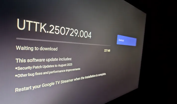 Google TV Streamer har nu uppdaterats för första gången på fem månader. Uppdateringen är 227 MB stor och ger firmwareversion UTTK.250729.004.