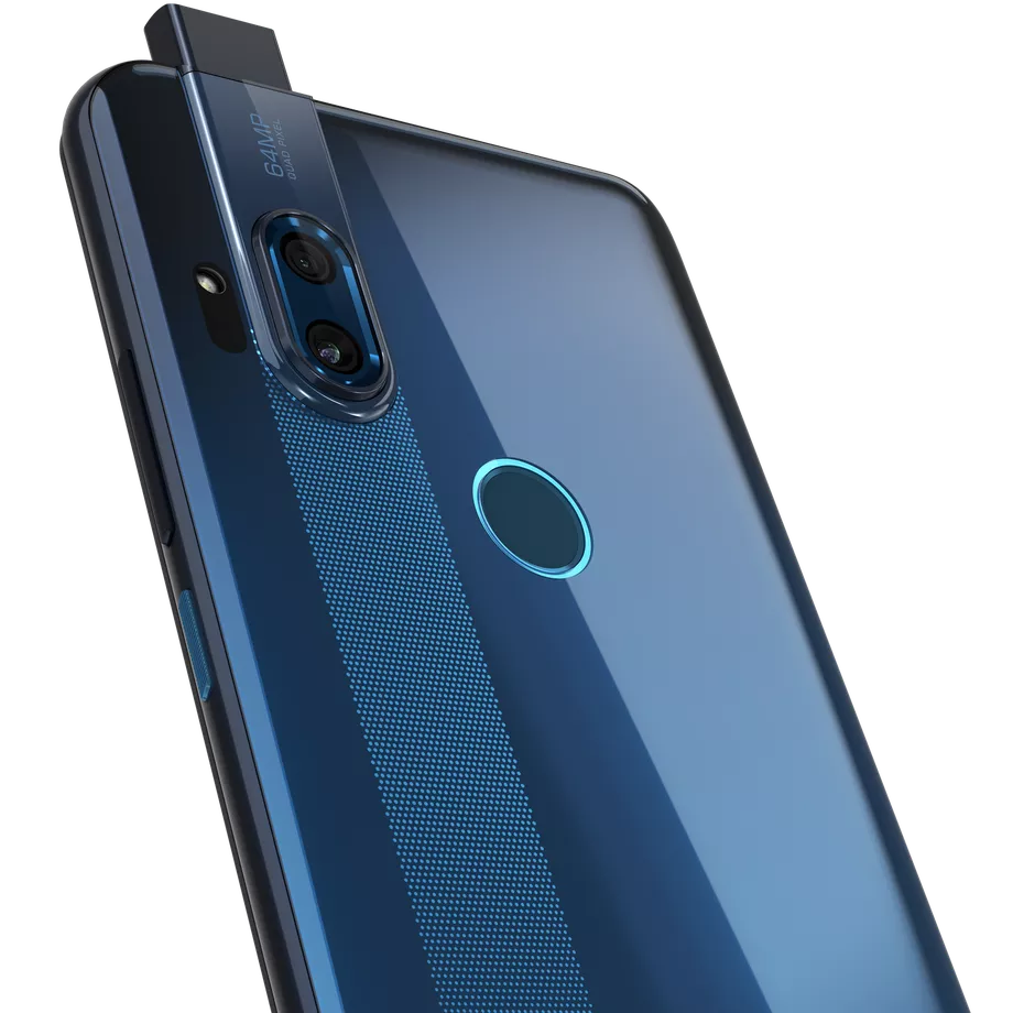 Motorola har satsat på en uppfällbar frontkamera i och med nya mellanklasstelefonen One Hyper. Tack vare popup-kameran avbryts inte 6,5-tumsskärmen (LCD / FHD+) av vare sig sensorjack eller kamera-öar.