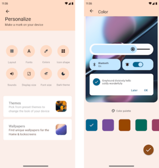 Motorola har samlat all personanpassning på samma skärm, däribland ändring av fonter och ikonformer. Några precisa datum anges inte för uppdateringen, då Motorola bara skriver att Android 12 kommer att skickas ut med start i februari.