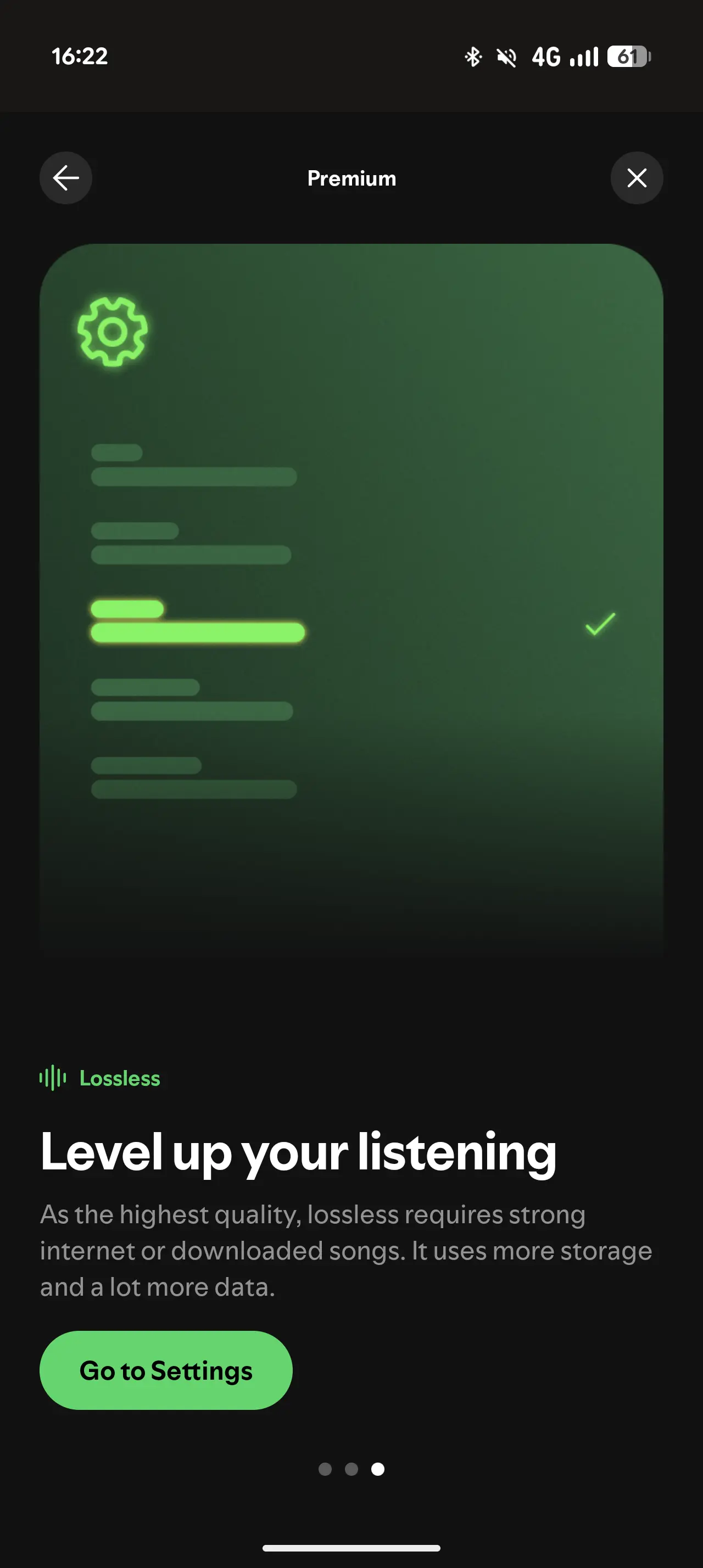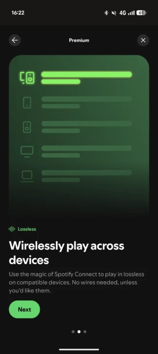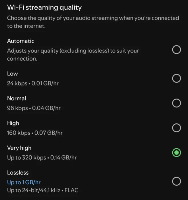 Gränssnittet påpekar att lossless (24-bit/44,1 KHz FLAC) kan kräva upp till en 1 GB data i timmen vid strömning. För att dra full fördel av den högre ljudkvaliteten behöver hörlurar eller högtalare anslutas med kabel. Att Spotify till sist kommer erbjuda förlustfritt ljud tillkännagavs för tre veckor sedan.