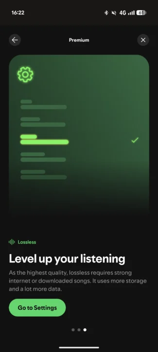 Abonnenter som startar Spotify-appen idag bör mötas av ett välkomstmeddelande som påpekar att det förlustfria ljudet nu är tillgängligt. Du kan aktivera det förlustfria ljudet genom att trycka på din profilbild uppe i vänstra hörnet av appen, välja ”Inställningar och integritet” längst ned och slutligen trycka på ”Mediakvalitet”.
