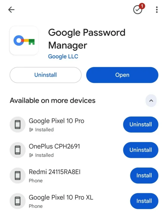 I och med version 48.8 av Play Store har det blivit enklare att avinstallera appar från andra enheter. När en app-sida öppnas i Play Store visas nu avinstallera-knappar ifall appen är installerad på fler av användarens mobiler och plattor.