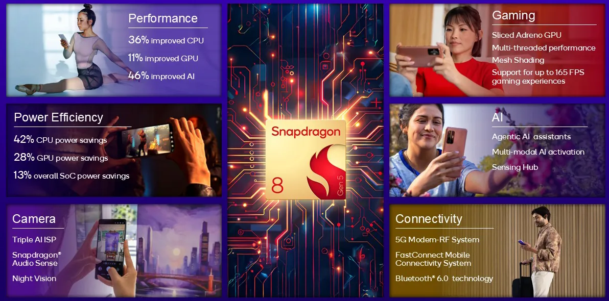 Qualcomm stoltserar därtill med att Snapdragon 8 Gen 5 är mer energieffektivt än Gen 3. Chippet som helhet ska vara 13 procent mer energieffektivt och processorn upp till 42 procent. Oneplus blir först ut med Snapdragon 8 Gen 5 genom Ace 6T (15R).