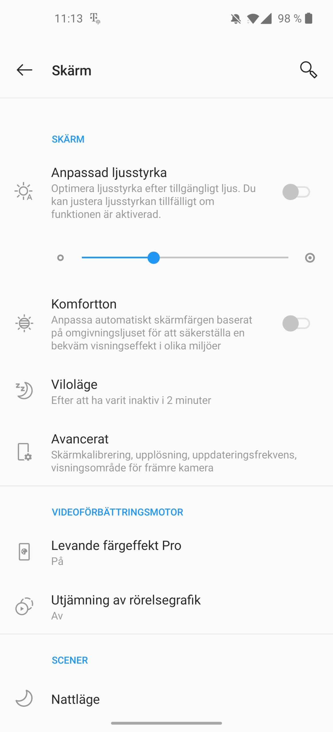 Ljusstyrkan är som vi nämner mycket bra – klart bättre än Google Pixel 4 XL och till och med ljusstarkare än Samsung Galaxy S10 Plus med manuellt satt maximal ljusstyrka. 8 Pro har därmed en mycket god läsbarhet utomhus även under soliga dagar, så länge direkt solljus undviks.