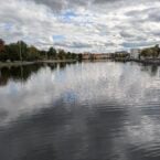 Skylt på andra sidan ån