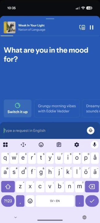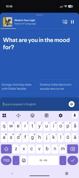 Finessen stödjer nu dessutom spanska utöver engelska, något som dock är mindre relevant för oss i Sverige. Prenumeranter kan nå Spotifys DJ genom att söka på ”DJ”. Diskjockeyn finns även i PC-klienten men där saknas den interaktiva funktionaliteten.