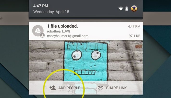 Senaste Google Drive för med sig delning av filer från aviseringsfältet