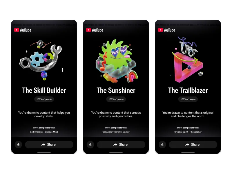 You’ll get a set of up to 12 different cards that spotlight your top channels, interests, and even the evolution of your viewing habits, or which personality type you fall into based on the videos you loved to watch!